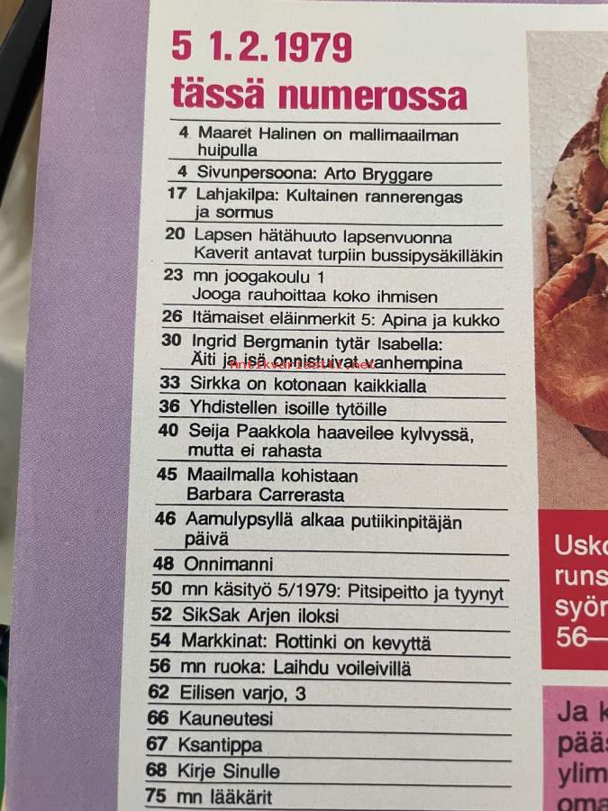 Me Naiset 1979 nr 5, Maaret Halinen, Arto Bryggare, Usabella Rossellini, Hilkka Alatalo, Seija Paakkola