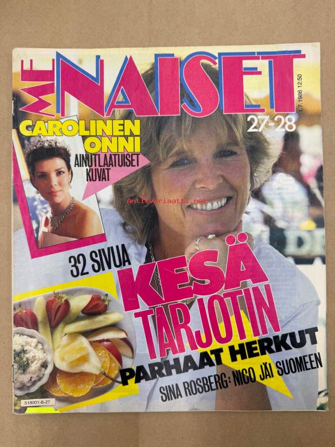 Me Naiset 1986 nr 27-28, Prinsessa Carolina, Kirsti Lagerspetz, Maarit Hurmerinta