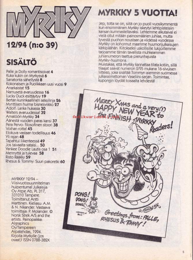 Myrkky 12/1994 - 68-sivuinen 5-vuotisjuhlanumero! Katso muu sisältö kuvista.