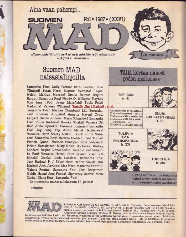 Suomen Mad 3/1989. Tukkikoon tämä lehti kaikki Suomen tietokonekuvatukset. (Sarjakuvalehti)