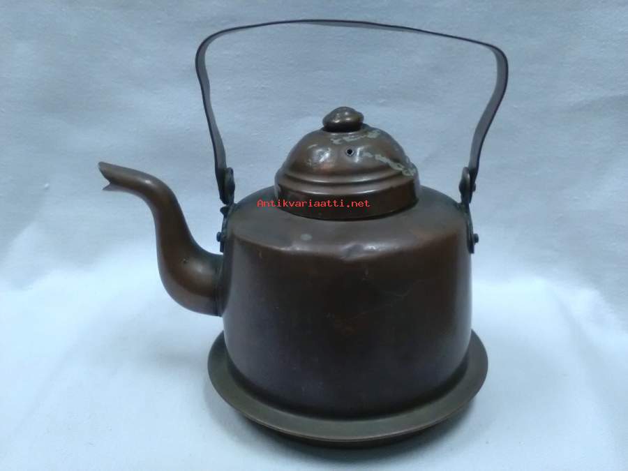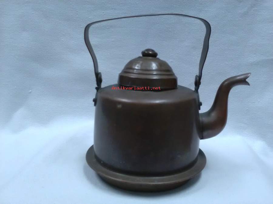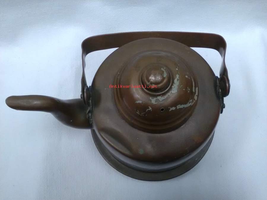 korkeus pohjasta sangan yläosaan 18cm, pohjan halkaisija ulkomitta 11,5cm, paino 418g, pannu hellanrenkaisiin, luonnollisesti käytön jälkiä, patinoitunut(kuparipannu 8)