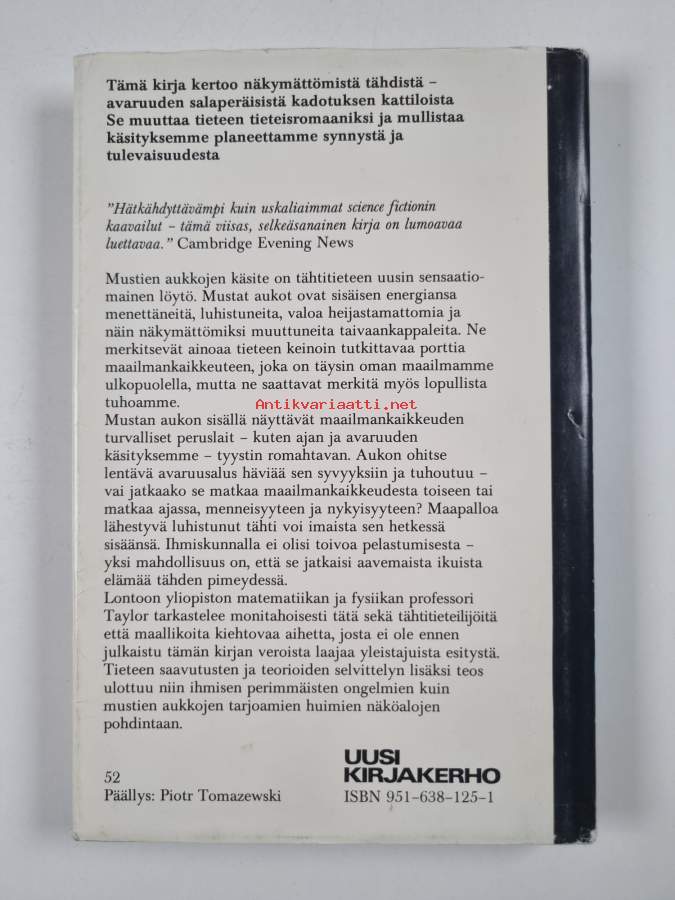 Mustat aukot : tuhoutuuko maailmankaikkeus? / John Taylor ; suom. Altti Hakaoksa.