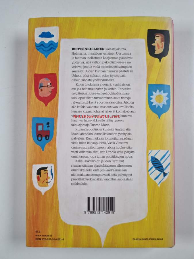 Hyvä. Hieman kolhua selkämyksen päissä, hieman nuhruisuutta kansissa, selkämyksessä vinoutta. Kansipaperin kunto: pienoista kulumaa reunoilla, muuten erinomainen