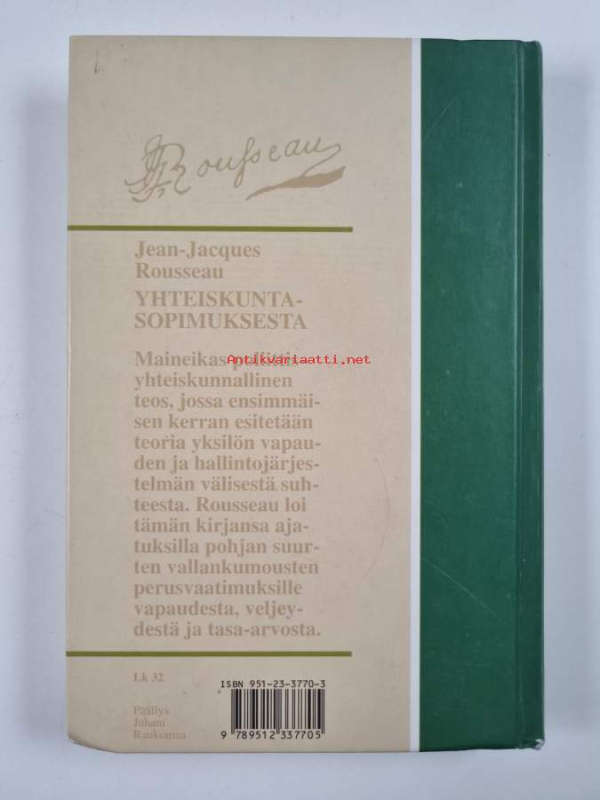 Muu(t) tekijä(t): J V LehtonenAlkuteos: Du contrat social ou principes du droit politiqueAsiasanat: valtioteoriat, yhteiskuntafilosofia, yhteiskuntateoriat, yhteiskuntasopimus