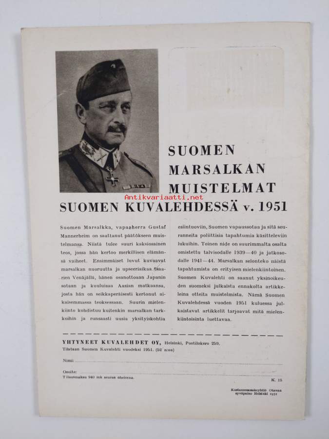 Metsästys ja kalastus vuosikerta 1951 (tammikuu-joulukuu)