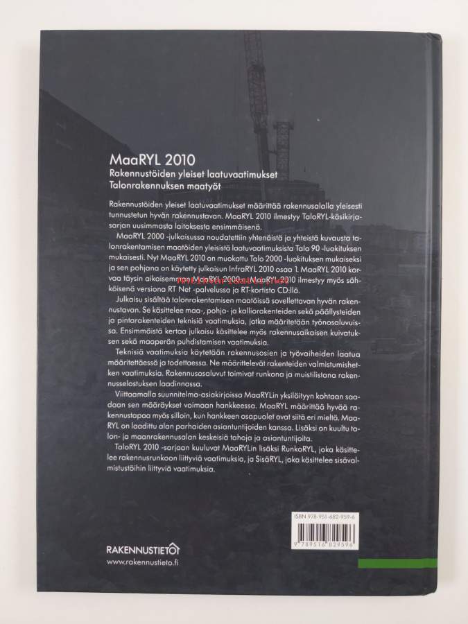 Sarja: TaloRYL 2010 -sarjaAsiasanat: rakentaminen, laatu, sanastot, talonrakennus, ohjeet, viherrakentaminen, rakennusohjeet, rakennustyöt, rakentamismääräykset, salaojitus, päällysteet, istutukset, geotekniikka, pohjarakennus, kalliorakentaminen, maarakennus