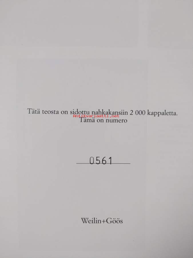 Hyvä. Tarkempi kuntoluokka: K3+ ; Aivan pienoista tahraisuutta kansissa, pienoista kulumaa kansissa, selkämyksessä aavistus vinoutta. kirja kotelossa jossa pienoista kulumaa, numeroitu 0561
