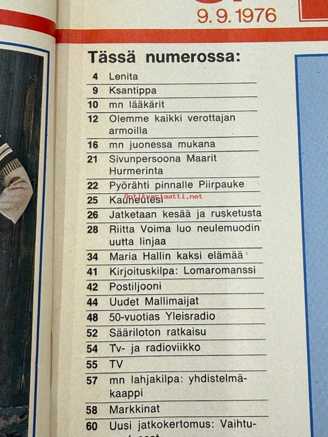 Me Naiset 1976 nro 37, ilmestynyt 9.9, Lenita, Piirpauke, Liisa Voima, Maria Hallin