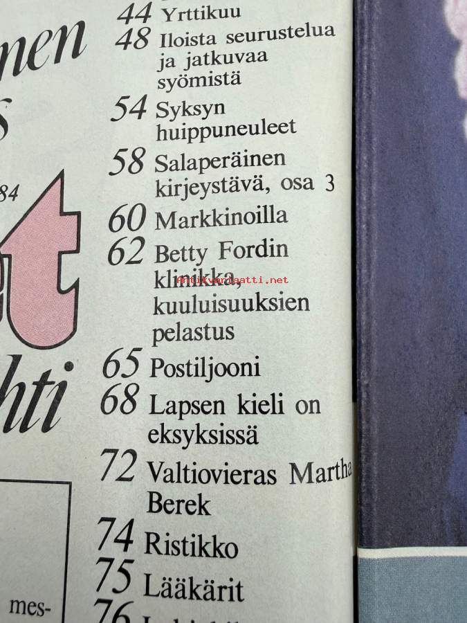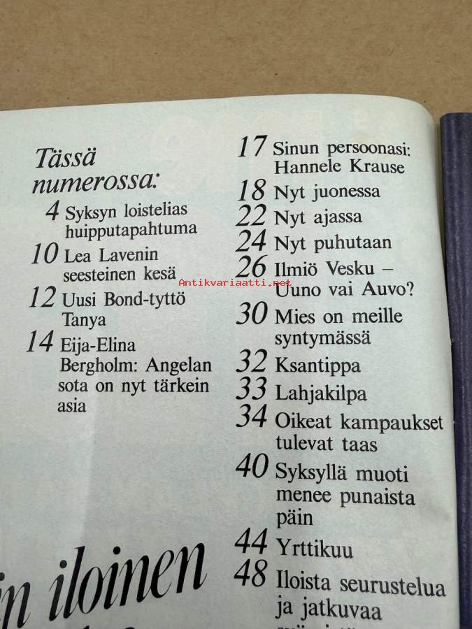 Me Naiset 1984 nr 36, Vesa-Matti Loiri, Lea Laven, Uusi Bond-tyttö Tanya, Eija-Elina Bergholm, Sinun persoona Hannele Krause, Betty Fordin klinikka