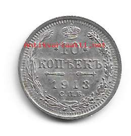 Venäjä 10 Kopeks 1913 Nikolai II hopeaa- ulkomainen kolikko