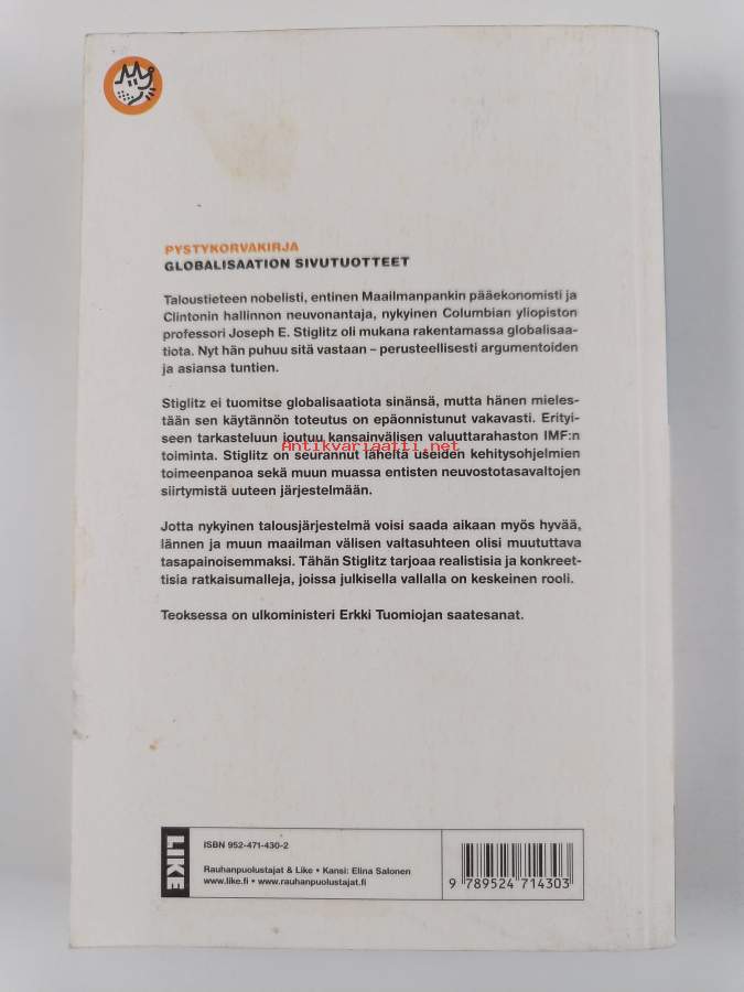 Muu(t) tekijä(t): Juhani Yli-VakkuriSarja: PystykorvakirjaAlkuteos: Globalization and its discontentsAsiasanat: taloudellinen integraatio, kansainvälinen kauppa, kansainvälinen talous, globalisaatio