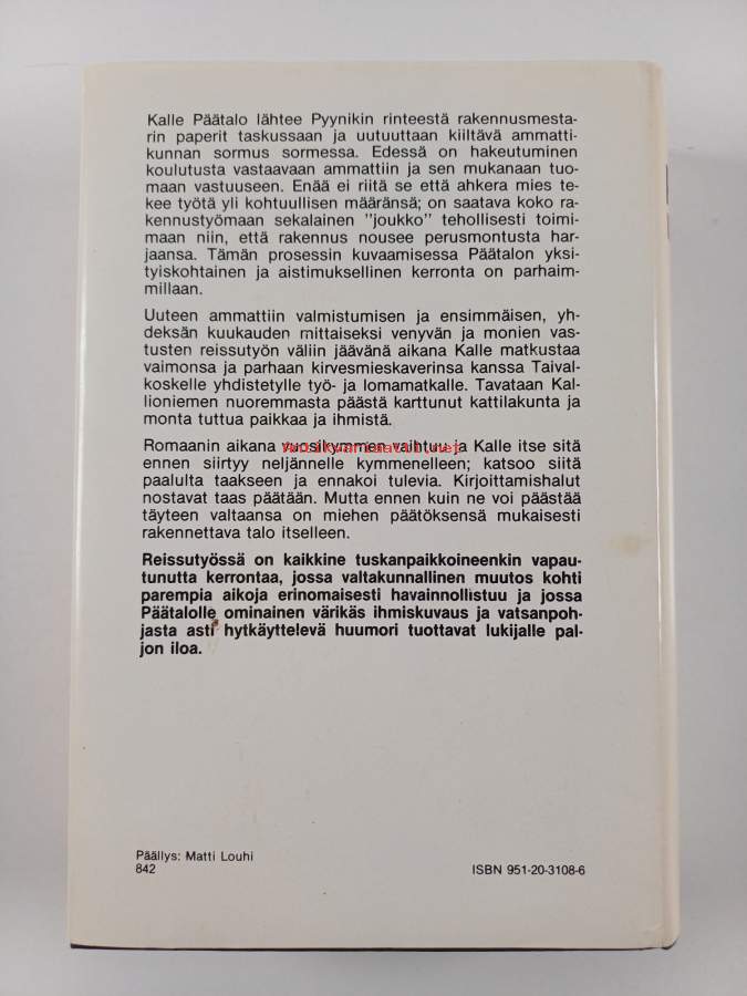 Reissutyössä,1988. 1. painos. Kalle Päätalo lähtee Pyynikin rinteestä rakennusmestarin paperit taskussaan ja uutuuttaan kiiltävä ammattikunnan sormus sormessa.
