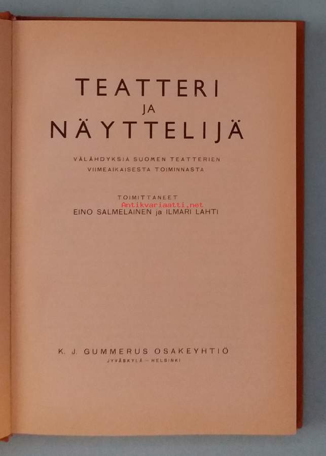 Teatteri ja näyttelijä – Välähdyksiä Suomen teatterien viimeaikaisesta toiminnasta. ( Kokoomateos, teatterin historiaa )