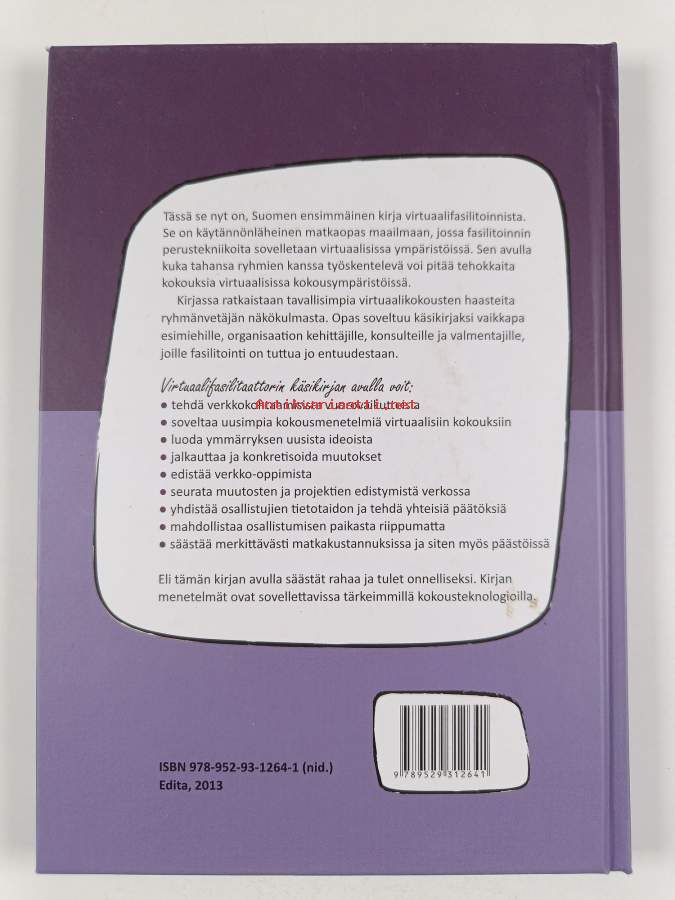 Muu(t) tekijä(t): Juha Saari, Netta NorroAsiasanat: työyhteisöt, ryhmätyö, organisaatiot, kokoustekniikka, viestintätekniikka, verkkoyhteisöt, fasilitointi, videoneuvottelut, organisationer, verkkoympäristö, grupparbete, nätgemenskaper, mötesteknik, virtuaaliympäristö, arbetsgemenskaper, kommunikationsteknik, facilitering, teleneuvottelut, videokonferenser, etäkokoukset, onlinemiljö, telekonferenser, distansmöten, virtuell miljö