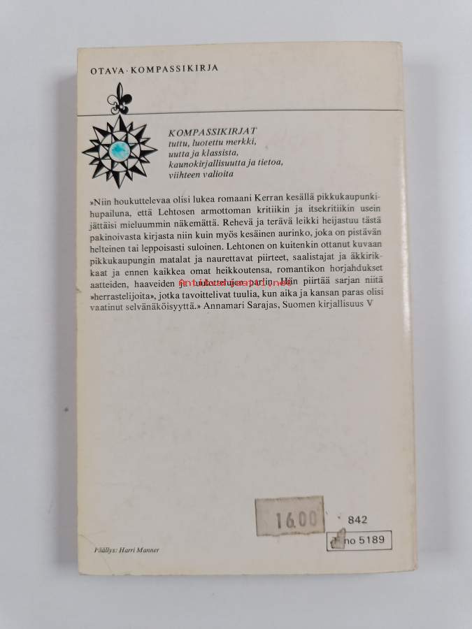 Hyvä. Tarkempi kuntoluokka: K3- ; Pientä kulumaa, hieman taitejälkeä kansissa, selkämyksessä lukutaittumaa