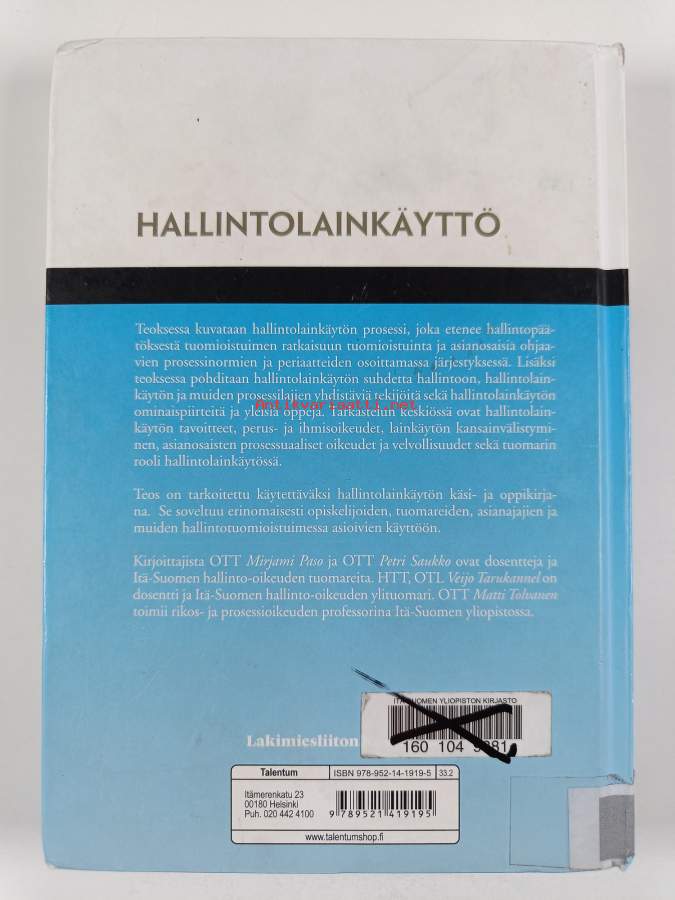 Muu(t) tekijä(t): Veijo Tarukannel, Mirjami Paso ym.Asiasanat: lainsäädäntö, riita-asiat, tuomioistuimet, julkisoikeus, prosessioikeus, hallintolainkäyttö, hallintoviranomaiset, hallintoasiat, hallintomenettely, muutoksenhaku, valitukset, hallintovalitukset, hallinto-oikeus (oikeudenala), hallintotuomioistuimet, hallintopäätökset, kunnallisvalitukset