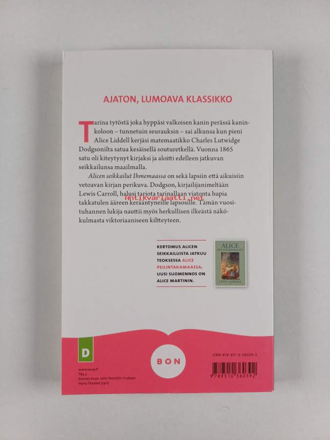 Muu(t) tekijä(t): Alice Martin, John TennielSarja: WSOY-pokkariAlkuteos: Alice's adventures in wonderlandAsiasanat: Liisa Ihmemaassa, Liisan seikkailut ihmemaassa