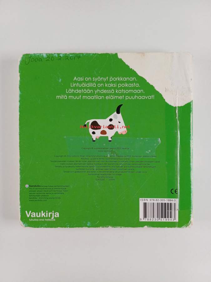 Muu(t) tekijä(t): Suvi ClarkeMerkinnät: omistajamerkintäAlkuteos: La petite fermeAsiasanat: eläimet, lastenkirjallisuus, kaunokirjallisuus, kuvakirjat, paksulehtiset kirjat
