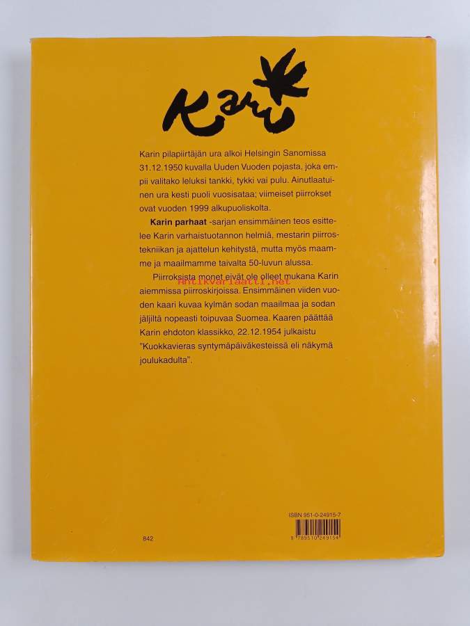 Karin ääni, 1990. Kirja 70-vuotiaasta pilapiirtäjästä Kari Suomalaisesta, taiteilijasta ja professorista, josta alistunut leppoisuus on kaukana. Karin ääni