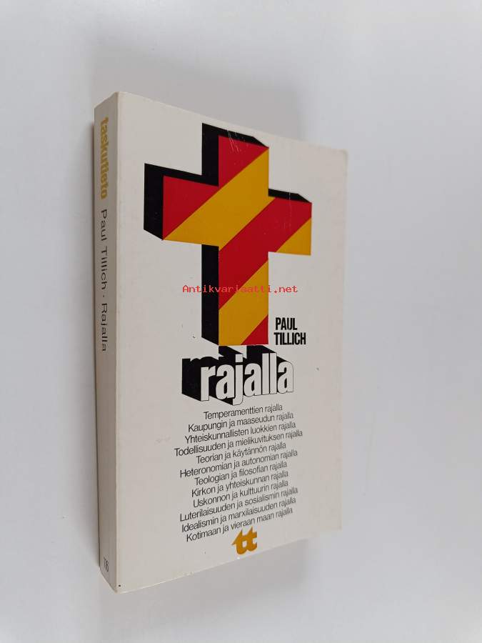 Muu(t) tekijä(t): Taisto NieminenSarja: Taskutieto 116Alkuteos: Auf der Grenze. Aus dem Lebenswerk Paul TillichsAsiasanat: kristinusko, filosofia, uskonnonfilosofia, teologia, uskontofilosofia