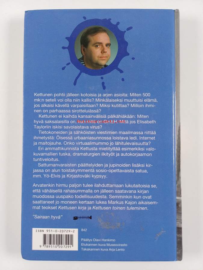 Kettusen kannettava, 2008. Kajon sanataituruus arjen ja juhlan pienistä iloista ja murheista jaksaa kantaa vuodesta toiseen. Lukija myhäilee mukana.