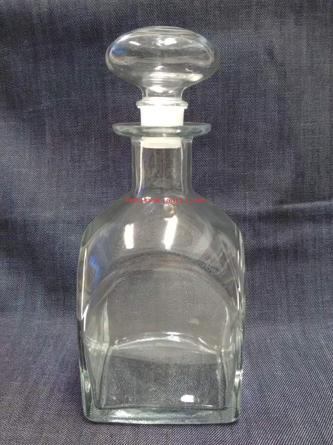 Lasia, kirkas, tiivis korkki, korkeus ilman korkkia 16,5cm, leveys 9cm, syvyys 9cm, tilavuus 0,7l, 2kpl karahveja, yhteishinta, vesikarahvi, öljypullo, viinikarahvi