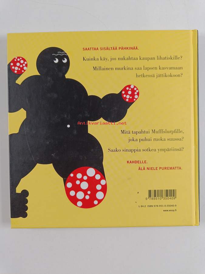 Ruoalla ei saa leikkiä, 2009.Tässäpä eriskummallinen kirja. Lintu vai kala? Takakannen kirjastoluokitus paljastaa teoksen lastenkirjaksi, mutta miksei tämä