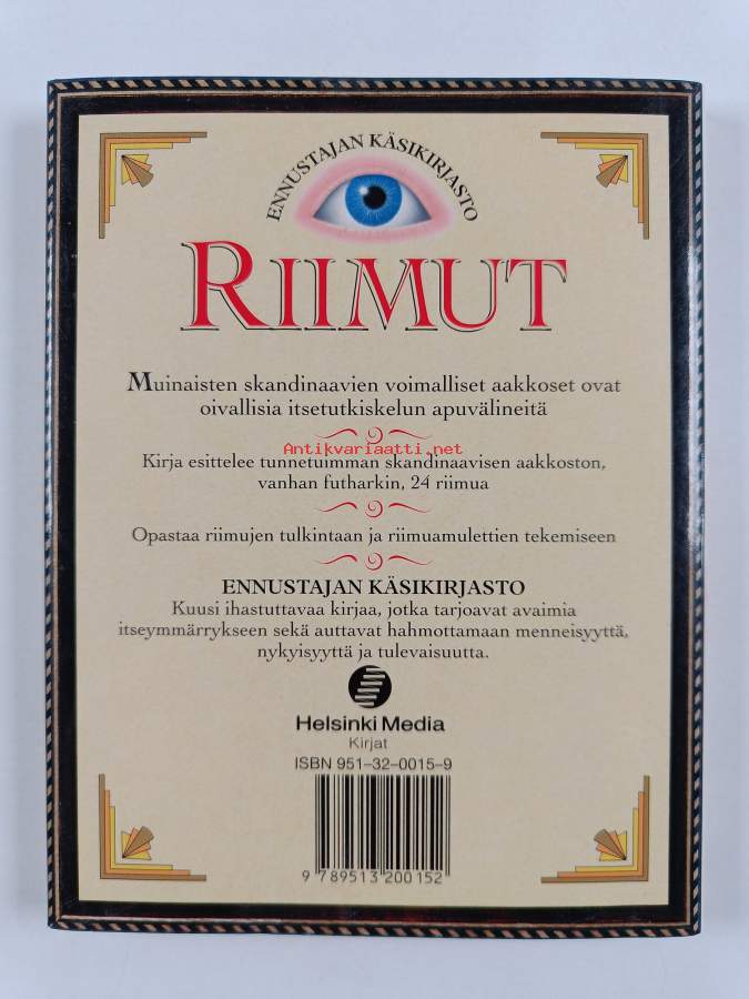 Muu(t) tekijä(t): Riitta ValajärviSarja: Ennustajan käsikirjastoAsiasanat: ennustaminen, riimukirjoitus