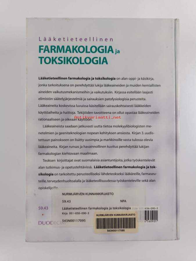 Muu(t) tekijä(t): Olavi Pelkonen, Ali Bardy ym.Asiasanat: vitamiinit, kivennäisaineet, syöpätaudit, sydän- ja verisuonitaudit, lääkkeet, lääkeaineet, mikrobilääkkeet, anestesiologia, farmakologia, toksikologia, antioksidantit, hengityselimet, ehkäisypillerit, myrkytykset, kipulääkkeet, Pharmacology, Clinical, Pharmacology, Neoplasms, Toxicology, keskushermosto, vitamins, trace elements, farmakokinetiikka, lääkket, kur tbi