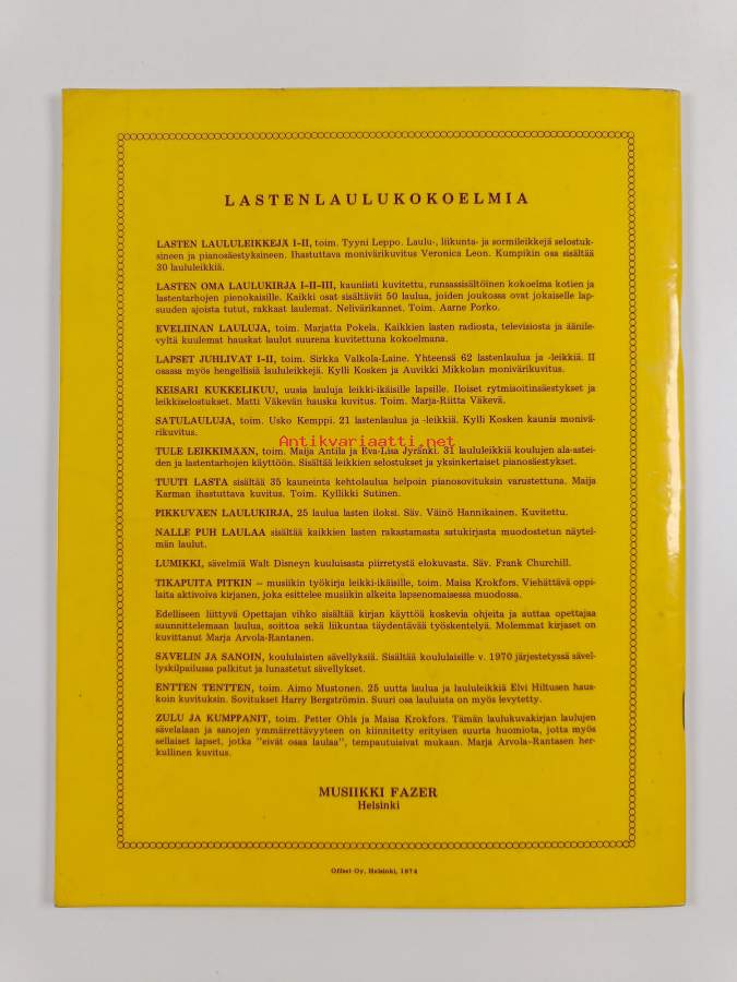 Muu(t) tekijä(t): Maisa KrokforsMerkinnät: ylivedetty omistajamerkintäAsiasanat: nuottijulkaisut, lastenlaulut