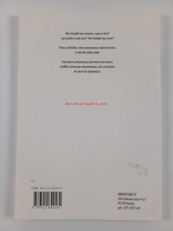 Sarja: StudiaAsiasanat: itsehoito, työyhteisöt, henkinen hyvinvointi, masennus, uupumus, hoitohenkilöstö, terveydenhuoltohenkilöstö, psyykkinen kuormittavuus, hoitoala, terveysala, Depression, Nursing, egenvård, utbrändhet, psykiskt välbefinnande, self concept, vårdpersonal, hälsovårdsbranschen, Nurses, arbetsgemenskaper, psykisk belastning, hälsovårdspersonal, vårdbranschen