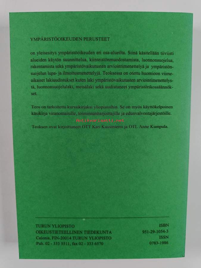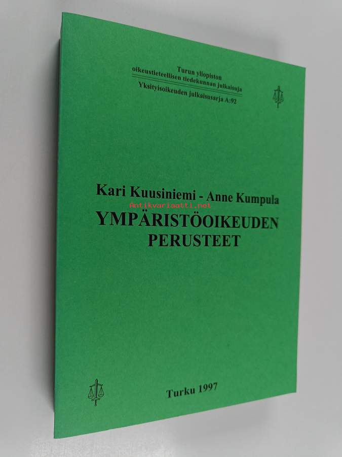 Muu(t) tekijä(t): Anne KumpulaSarja: Turun yliopiston oikeustieteellisen tiedekunnan julkaisuja. Yksityisoikeuden julkaisusarja A 92Asiasanat: ympäristöpolitiikka, oikeus, Jurisprudence, environmental policy