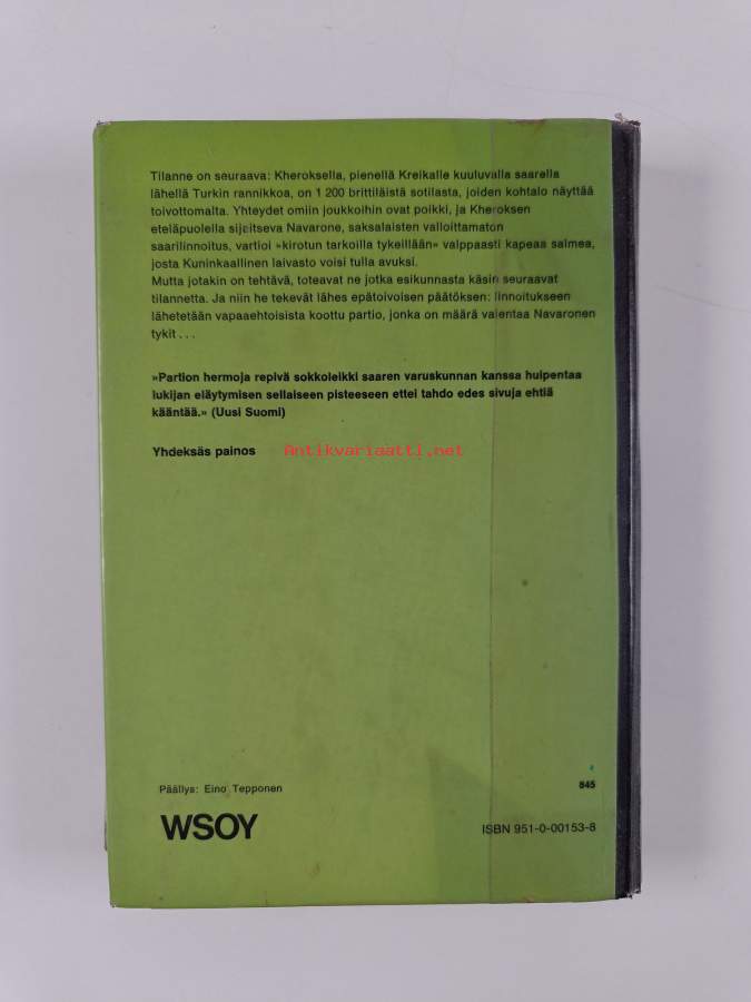 Navaronen haukat, 1968. 1. painos.Jatko-osa teokselle Navaronen tykitNavaronen tykkilinnoituksen rauniot savuavat vielä, kun sen kukistajat määrätään
