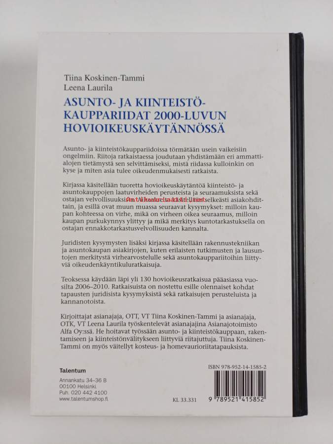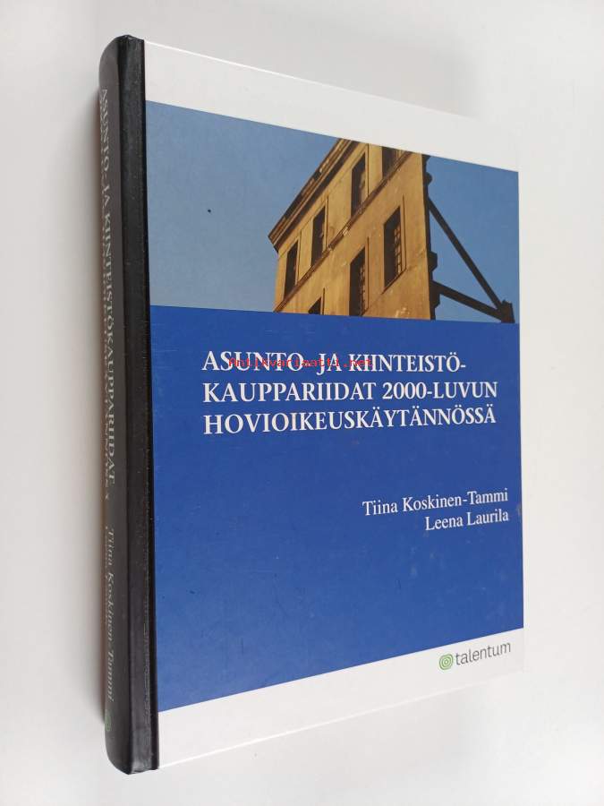 Muu(t) tekijä(t): Leena LaurilaAsiasanat: laatu, asuntokauppa, asiakirjat, hovioikeudet, oikeuskäytäntö, velvollisuudet, kiinteistökauppa, riidat, seuraamukset, oikeudenkäyntikulut, kuntotarkastus