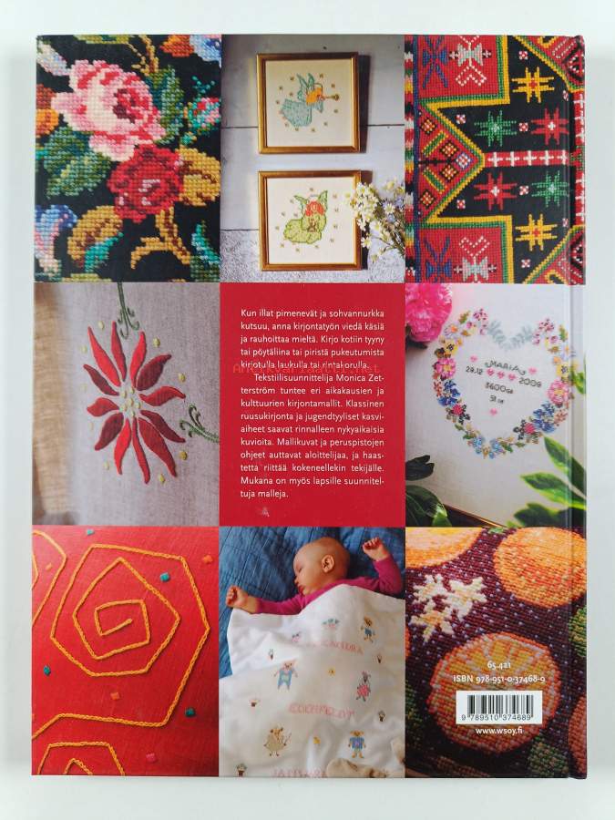 Kirjomalla kauneutta arkeen, 2000. Kirjan mallit tarjoava uusia ideoita kodintekstiilien ja lastenvaatteiden koristeluun ja kankaiden ja esineiden kirjontaan.