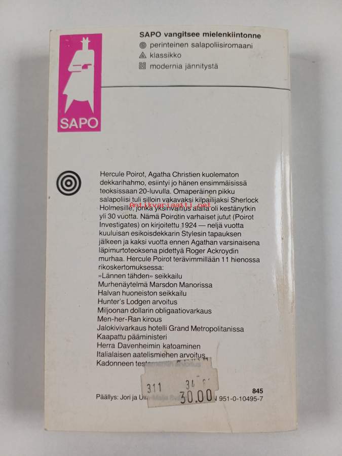 Muu(t) tekijä(t): Aulis RantanenMerkinnät: omistajamerkintäSarja: Sapo 263Alkuteos: Poirot InvestigatesAsiasanat: hercule poirot