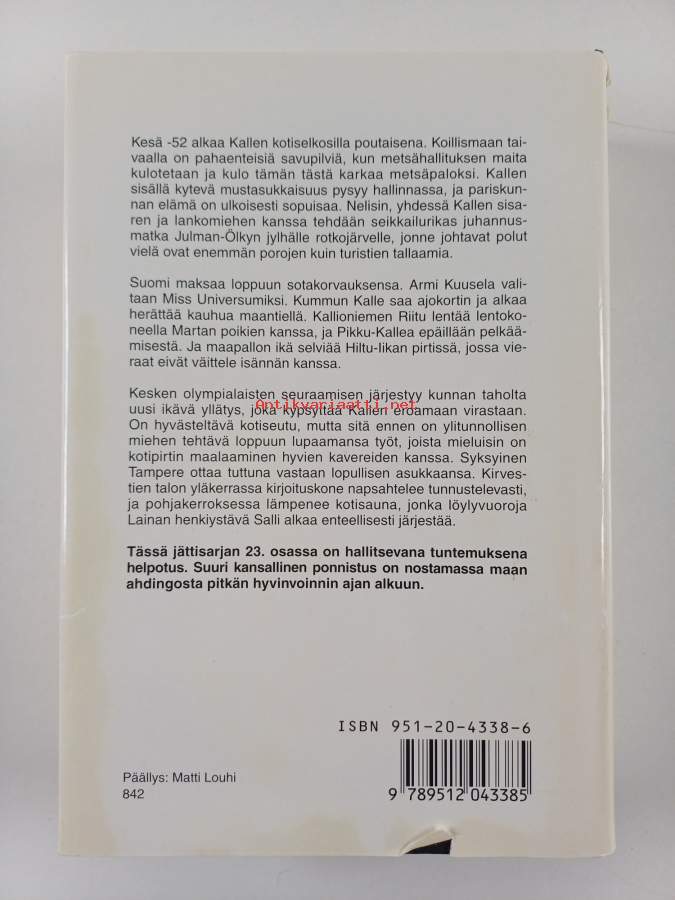 Hyvä. Tarkempi kuntoluokka: K3+ ; Pienoista kulumaa, pienoista tahraisuutta. Kansipaperin kunto: jonkin verran kulumaa/pienoisia repeämiä / tyhjällä esilehdellä aivan pienoinen pintarepeämä