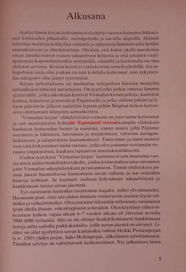 Historiikki käsittelee Virmailan saaren ja suvun historiaa, paikallisia muistoja ja kohtaloita. Kuvitettu. Dimensiot 25 ¤ 18 cm