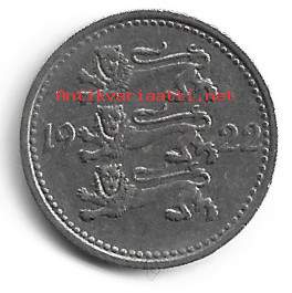 Viro Eesti 3 Marka 1922 - ulkomainen kolikko