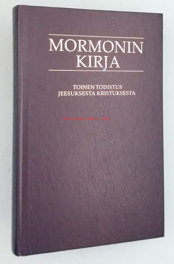 Kirja on uskonnollinen pyhä teksti, jota käytetään Raamatun rinnalla Myöhempien Aikojen Pyhien Jeesuksen Kristuksen Kirkossa. Kirja esittää olevansa muinaisten Amerikan mantereella eläneiden kansojen historiaa ja heidän Jumala‑suhdettaan. Dimensiot 21 ¤ 14 cm.