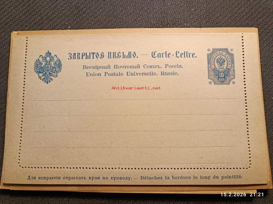 Venäjän keisarikunnan 10 kopeekan postikirje (carte‑lettre), rengasmerkkityyppi.1889. 1.p. Pietarin painon (Почтовая Экспедиция) varhaisin rengasmerkkinen postikirje