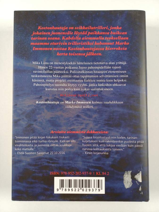 Erinomainen. Tarkempi kuntoluokka: K4- ; Selkämyksessä aavistus vinoutta. Kansipaperin kunto: pienoista kulumaa reunoilla, muuten erinomainen