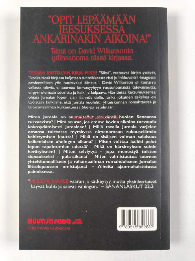 Muu(t) tekijä(t): Irmeli HelinAlkuteos: God's Plan to Protect His People in the Coming DepressionAsiasanat: usko, kriisit, profetiat, taloudelliset kriisit, lama, eskatologia, apokalyptiikka