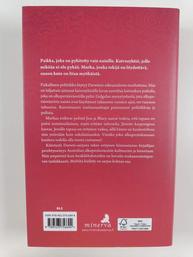 Sarja: Darwin, Minerva CrimeAlkuteos: Enbart kvinnorAsiasanat: alkuperäiskansat, murha, kaivokset, Australia, räjäytystyöt, rikostutkijat, demonstraatiot