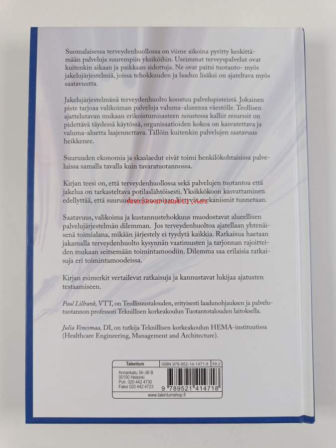 Muu(t) tekijä(t): Julia VenesmaaAsiasanat: palvelut, kustannukset, tuottavuus, terveyspalvelut, terveydenhuolto, saatavuus, jakelu, alueellisuus, palvelujärjestelmät, palvelurakenne, valikoimat, sähköiset palvelut, delivery of health care, health services, hoitosuositukset