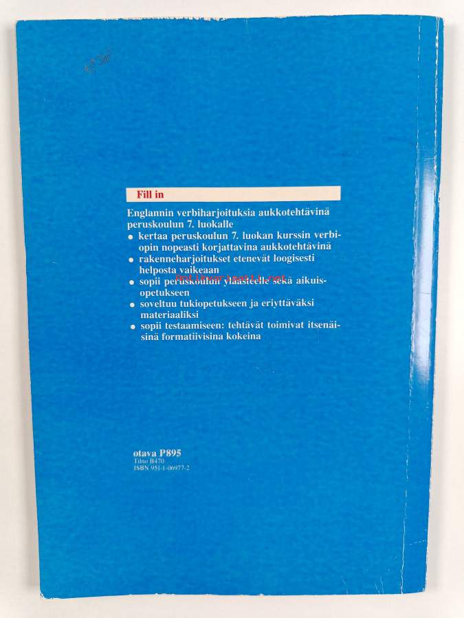 Fill in : englannin verbiharjoituksia aukkotehtävinä peruskoulun 7. luokalle