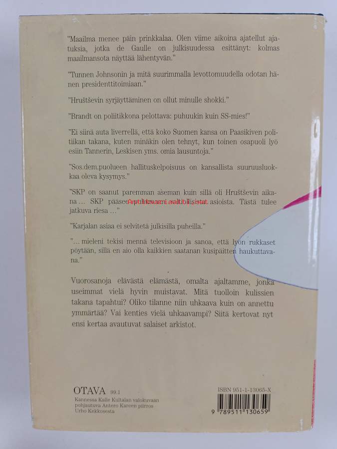 Urho Kekkonen-paketti (11 kirjaa) : Urho Kekkonen1936-1944 Myrrysmies ; Urho Kekkonen 1944-1950 Vonkamies ; Urho Kekkonen 1950-1956 Kuningastie ; Urho Kekkonen 19...