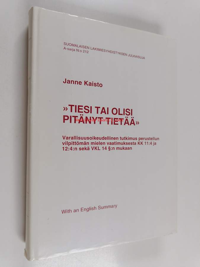 "Tiesi tai olisi pitänyt tietää" : varallisuusoikeudellinen tutkimus perustellun vilpittömän mielen vaatimuksesta KK 11:4 ja 12:4:n sekä VKL 14 :n mukaan