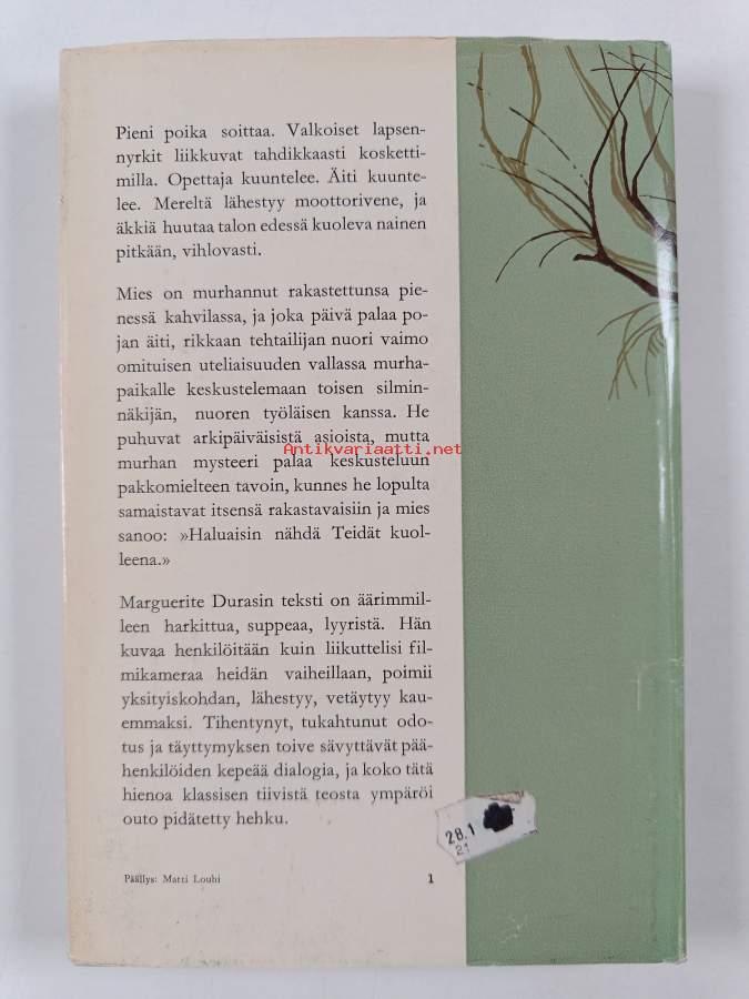 Hyvä. Tarkempi kuntoluokka: K3+ ; Pienoista kulumaa, selkämyksessä hieman vinoutta, takana vanha hintalappu. Kansipaperin kunto: jonkin verran kulumaa/pienoisia repeämiä