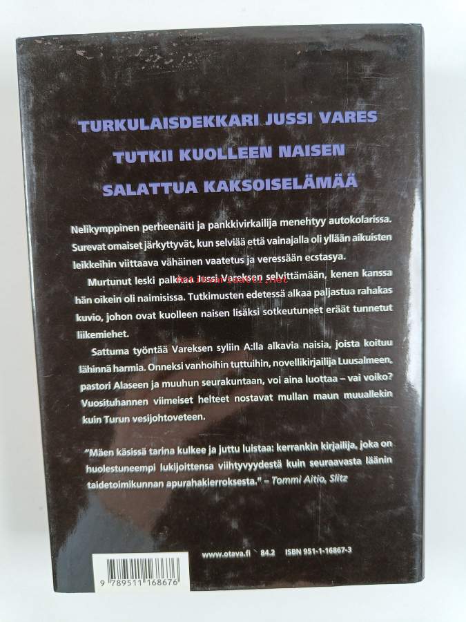 Hyvä. Tarkempi kuntoluokka: K3+ ; Pienoista kulumaa, selkämyksessä hieman vinoutta. Kansipaperin kunto: jonkin verran kulumaa & tahraisuutta